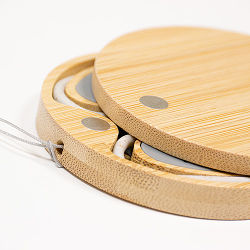 The Niksai-11544 Bamboo Travel Kit is an elegant, nature-inspired solution for all your travel accessory needs. Crafted from sustainable bamboo, this circular kit houses a collection of essential adapters and cables, all neatly organized within. Its portable design (8 cm diameter) makes it convenient for travelers, easily fitting into any bag. Personalize it with your brand logo through UV Dtf, UV Printing, or engraving to make a lasting impression on environmentally conscious customers. This item is a great choice for brands looking to merge style with sustainability.