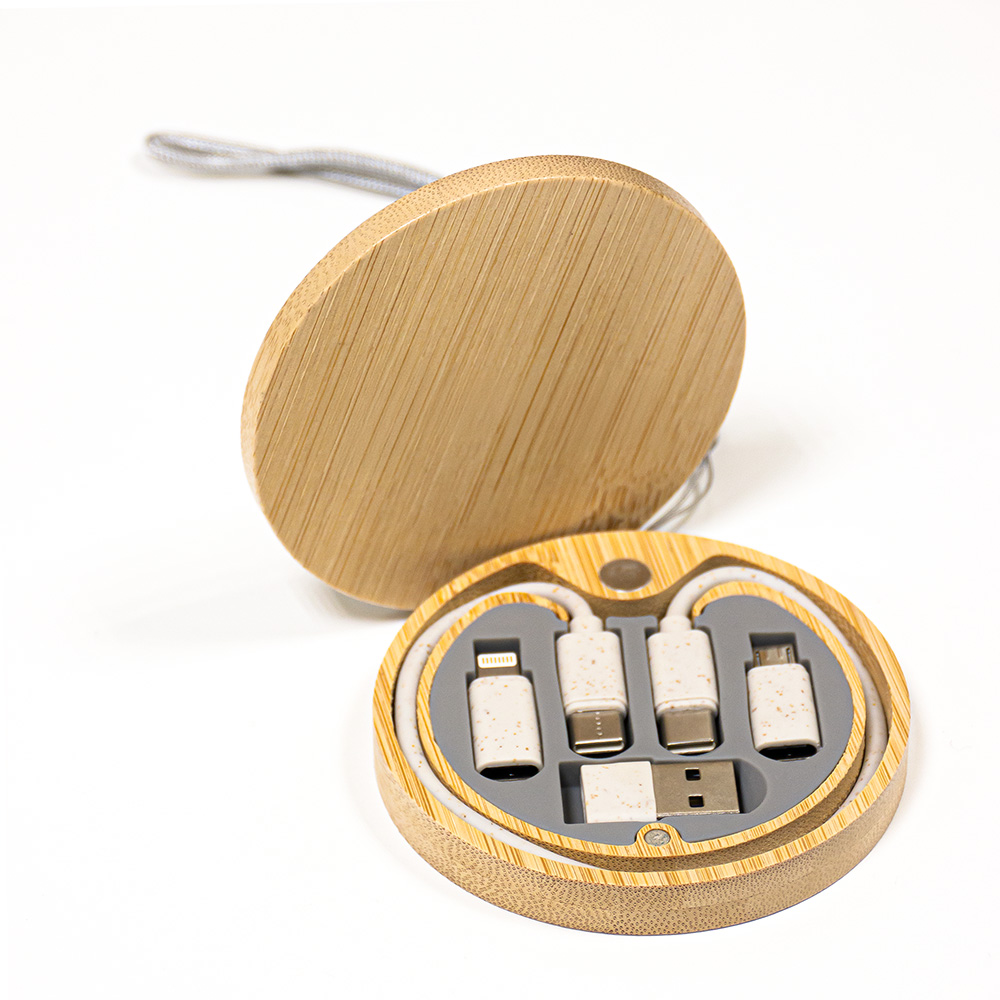 An ideal promotional item for travelers, this bamboo kit helps reduce your environmental footprint while staying connected on the go.